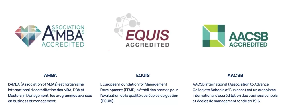 - Audencia nằm trong 1% các trường đại học trên thế giới được cả 3 tổ chức kiểm định EQUIS, AACSB và AMBA công nhận với thời hạn tối đa 5 năm.