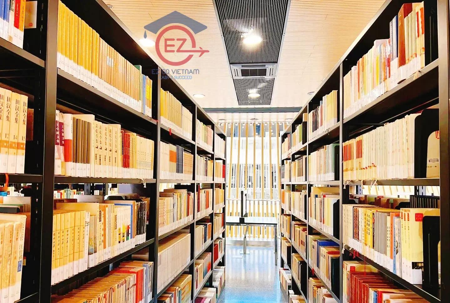 Thư viện rộng rãi, hiện đại với hàng triệu tư liệu phục vụ sinh viên tra cứu, học tập.