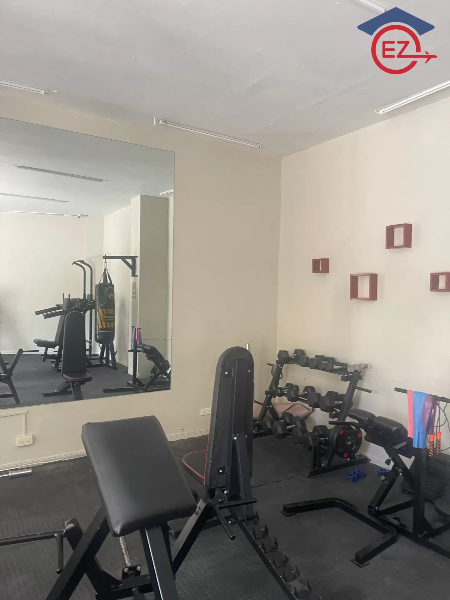 Phòng Gym đầy đủ dụng cụ, máy móc, là nơi mà các học viên nam cực kỳ quan tâm.