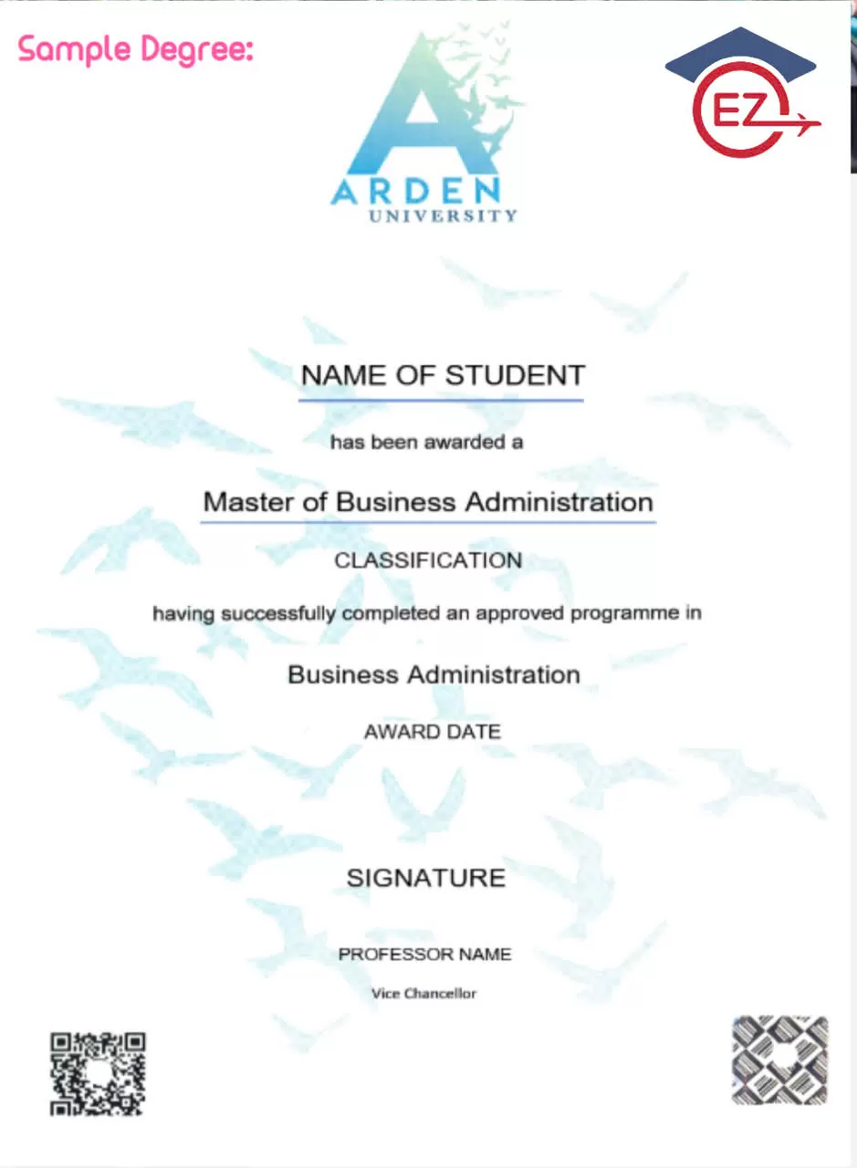 Mẫu phôi bằng từ Arden University , UK cho khoá MBA của Ascensus Institute.