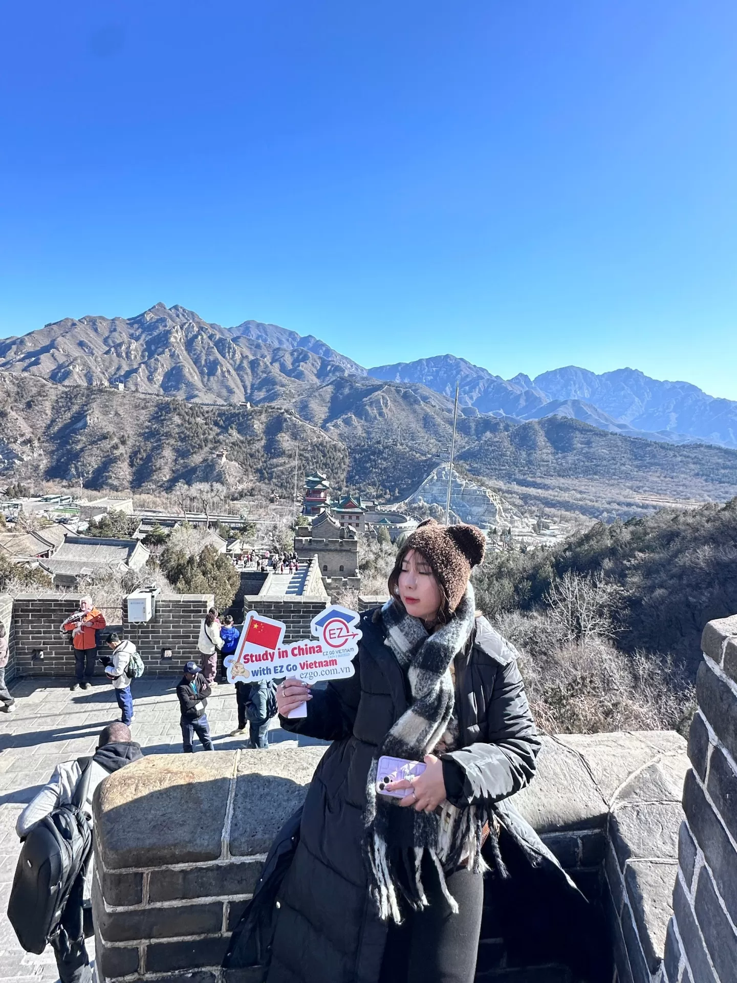 - Leo lên các bậc thang dốc đứng để chinh phục một phần Trường Thành.