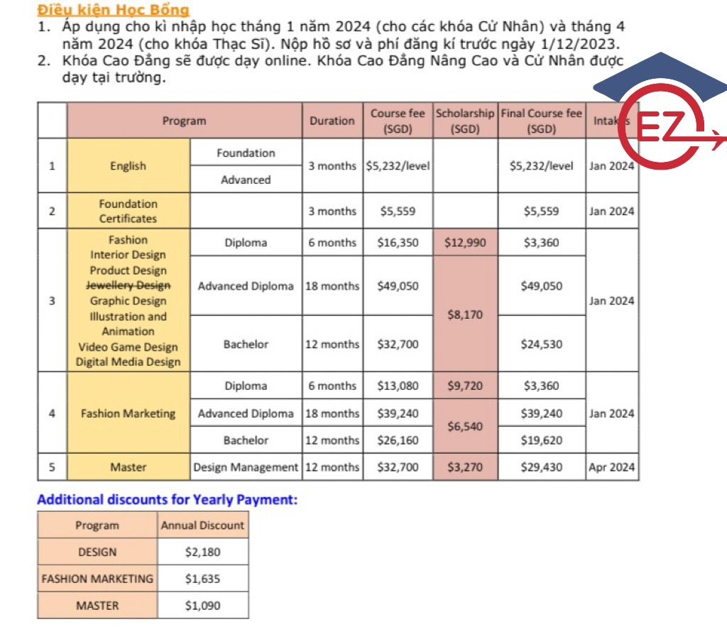 d. Giảm SGD 2,180 cho phương thức đóng học phí theo năm