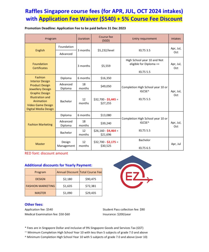 Học phí Raffles Singapore (cho kì tháng 1/2024)