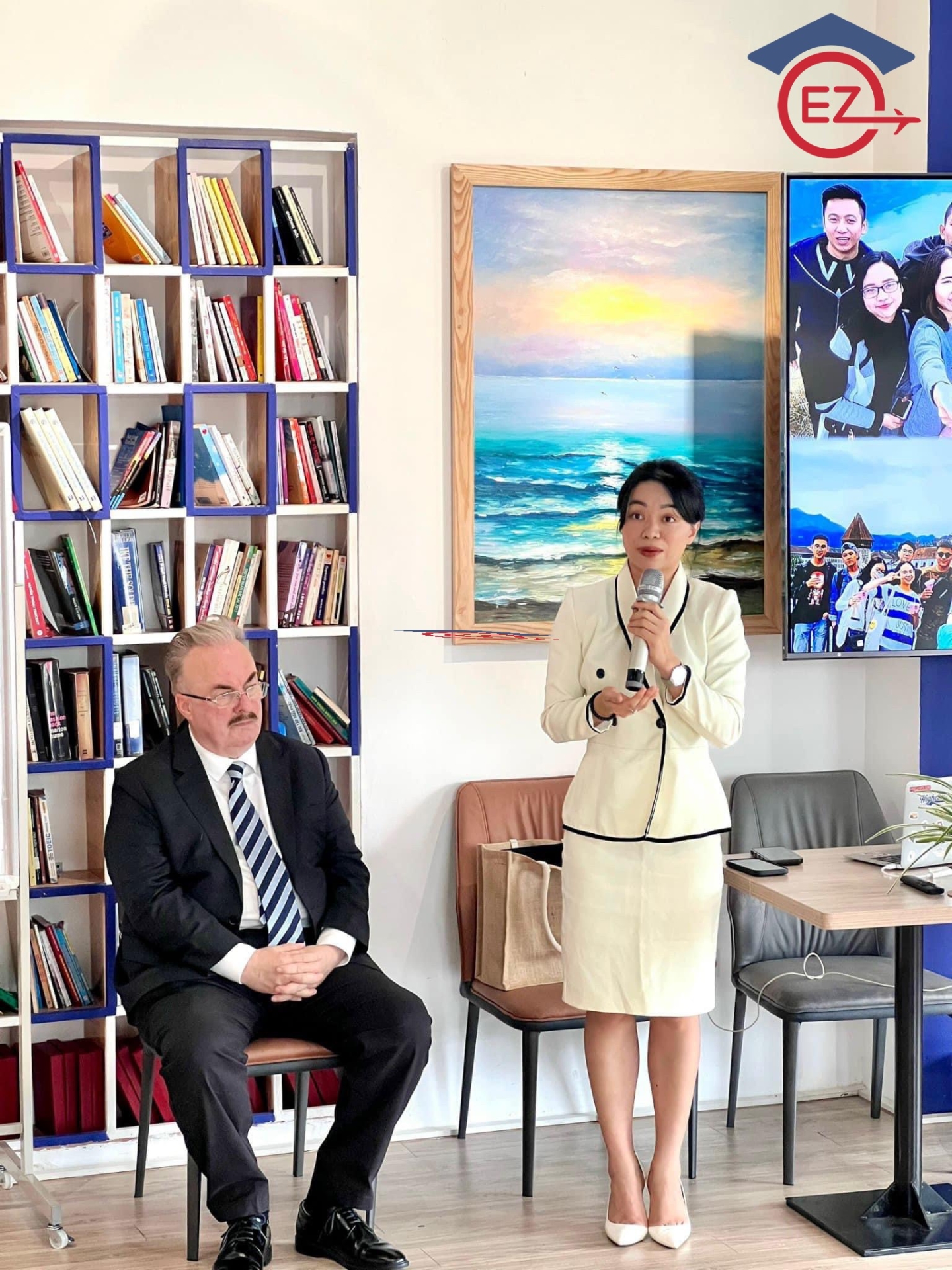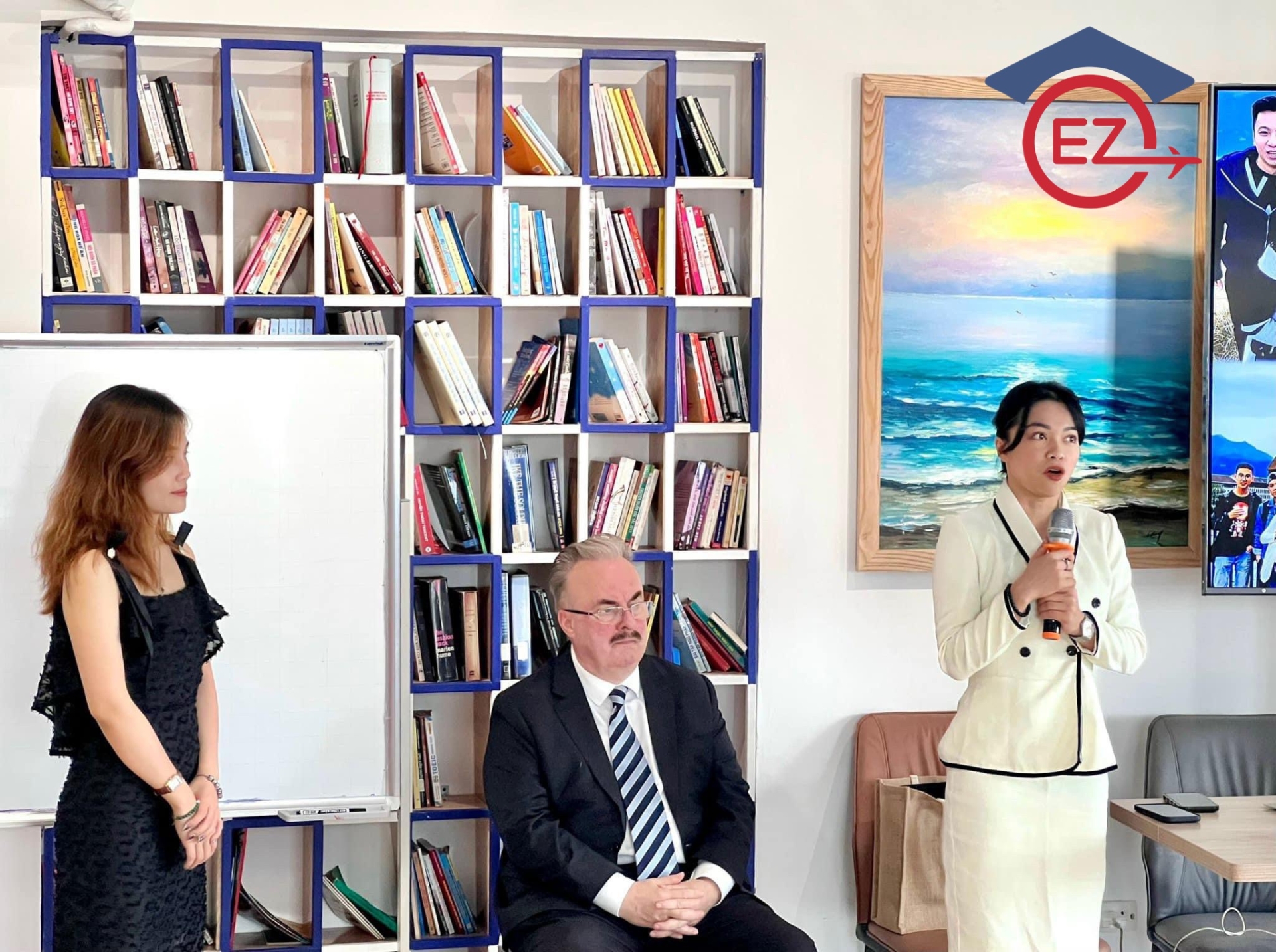 Ms Đỗ Ngọc Bích - CEO của EZ Go Vietnam và thầy Ian Larmour cùng Ms Zee Hoang chụp ảnh kỷ niệm trong buổi hội thảo.
