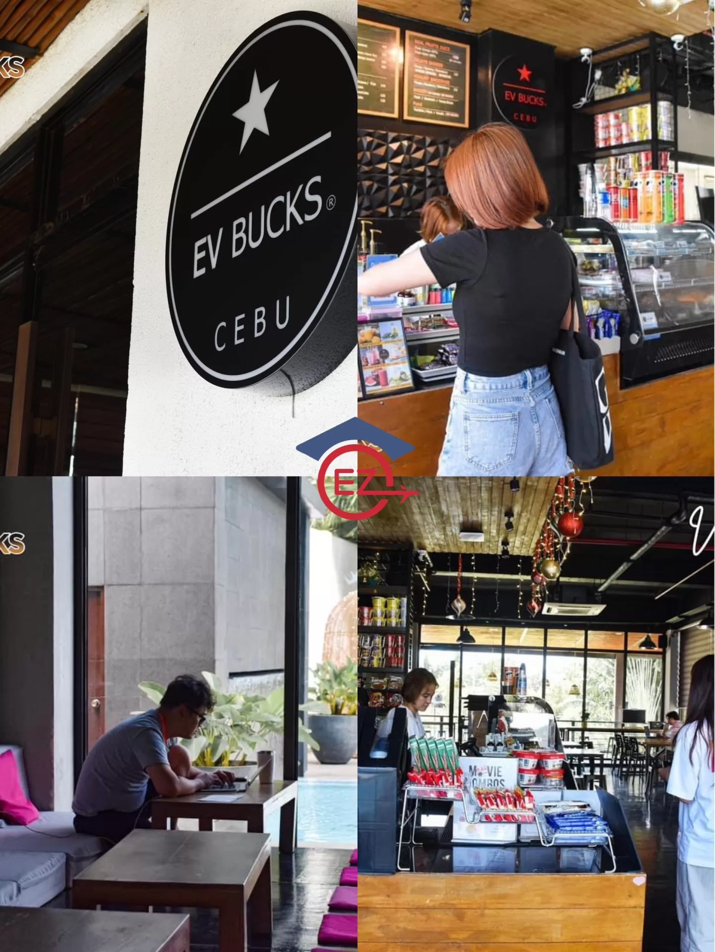 Ngay từ phía tay trái khi đi từ cổng chính, các bạn sẽ thấy 1 quán cà phê cực xinh xắn, tên là EVBucks được thiết kế theo lối cổ điển pha chút hiện đại, là không gian cực chill cho các bạn Gen Z "tám chuyện" cuối tuần hoặc sau giờ học.