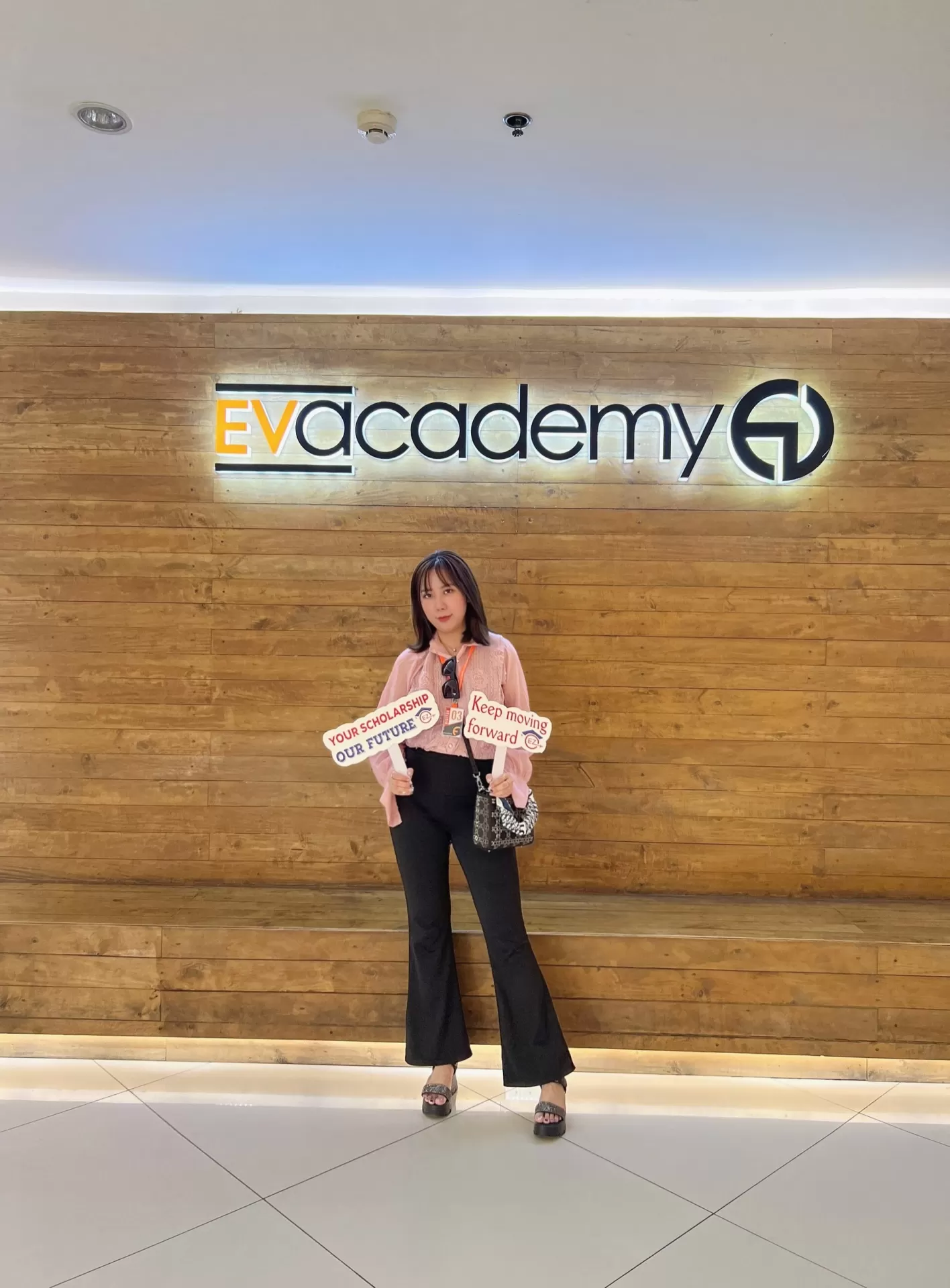 Ngay sảnh của trường là khu vực check-in với logo biểu tượng của trường được khắc nổi trên nền gỗ với đèn LED sáng trưng. Khu vực này được xem là trung tâm của mọi khoảnh khắc thú vị cũng như là địa điểm "nhận dạng" của EV.