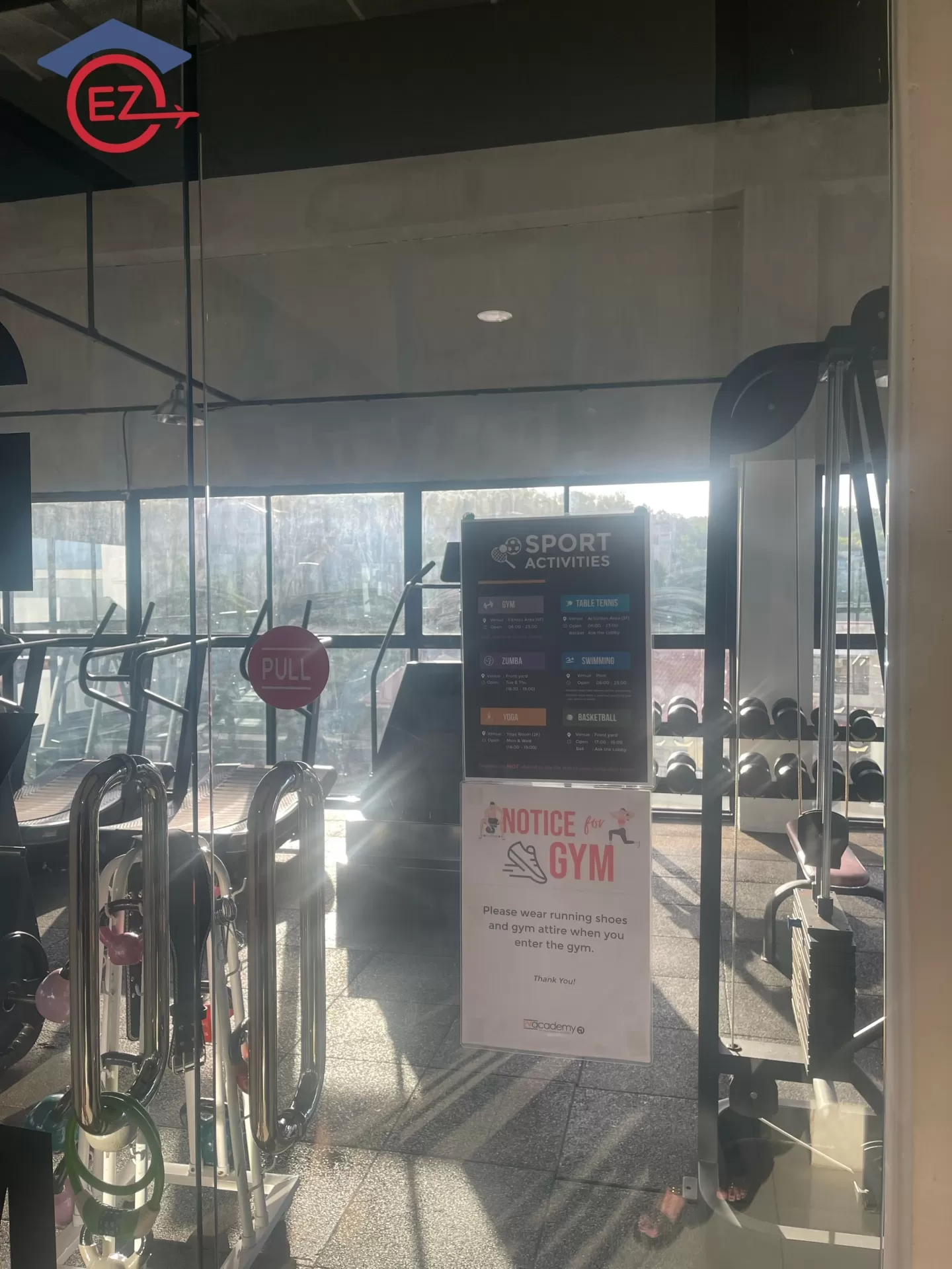 Khu vực phòng Gym dành cho những bạn học viên trên 18, với đầy đủ dụng cụ chuyên nghiệp, ko thua kém bất cứ 1 trung tâm fitness chuyên nghiệp nàooo