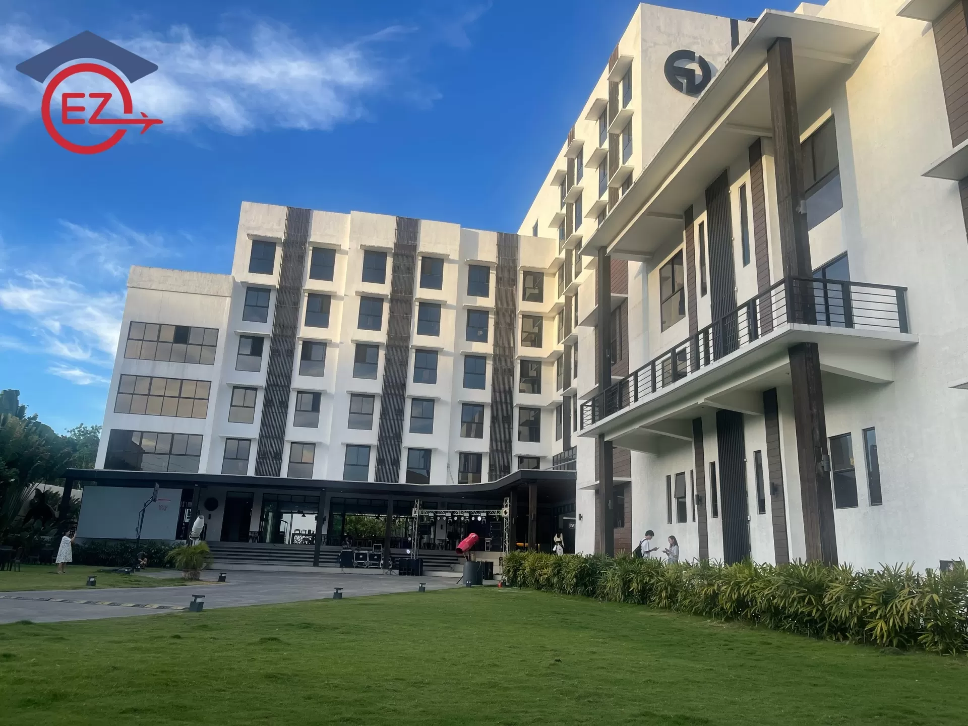 Bước từ taxi xuống, cổng trường đã gợi cho chúng ta tới một không gian thanh lịch và hiện đại giữa lòng thành phố Cebu xinh đẹp.