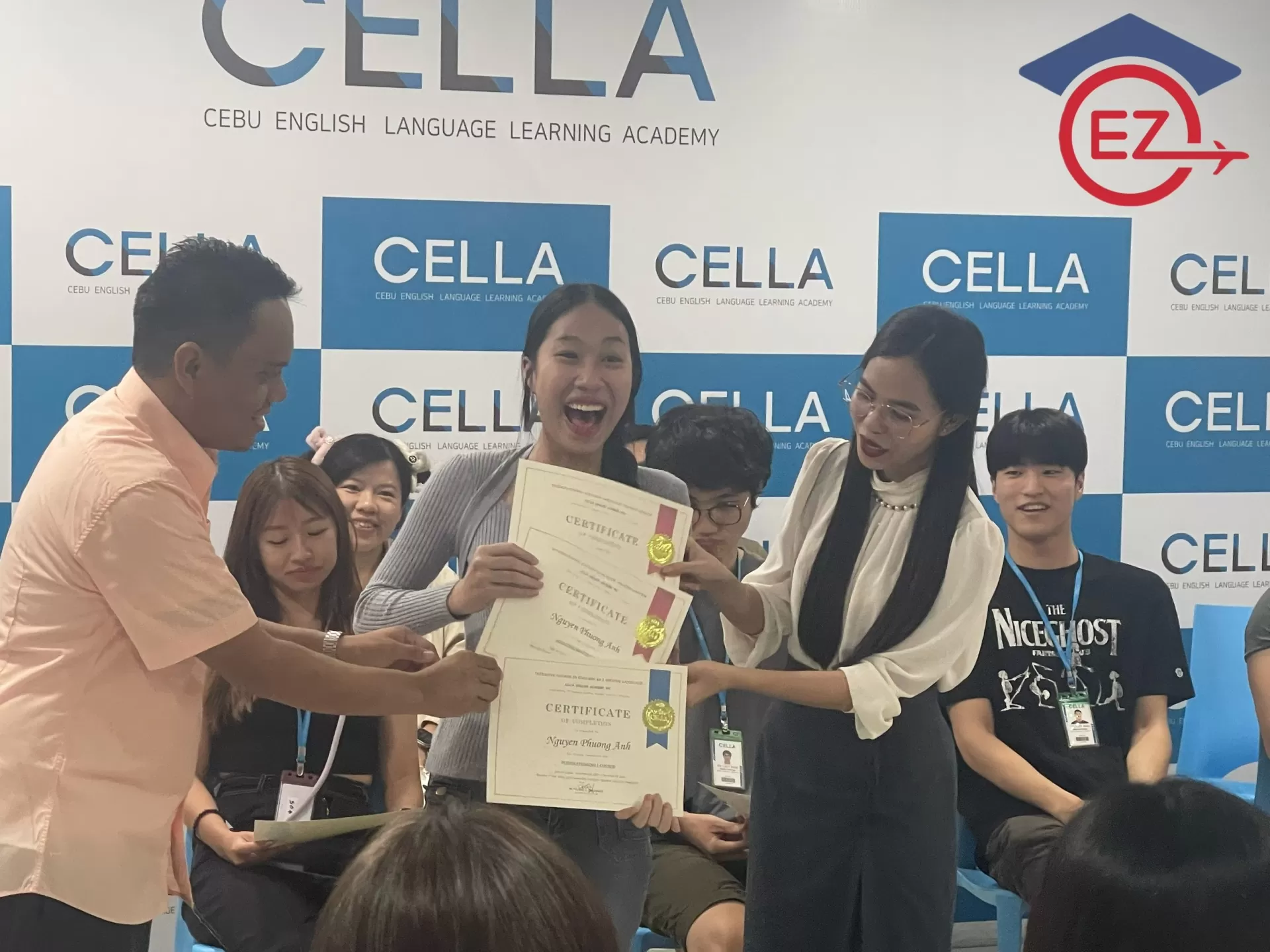 Vào đúng 17h00 ngày thứ 6 trong tuần, trường CELLA sẽ tổ chức lễ bế giảng, trao bằng tốt nghiệp cho học viên. Các bạn dù học chương trình nào, thời lượng bao lâu, cũng sẽ đều được nhận chứng chỉ hoàn thành khoá học, nếu các bạn đạt đủ điều kiện tốt nghiệp.