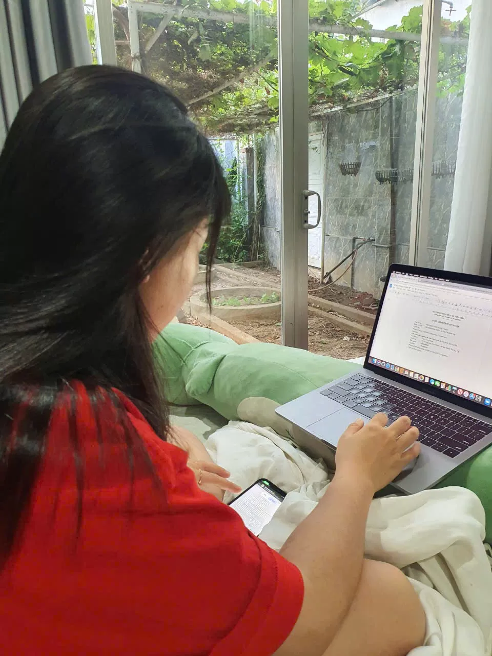 Cô bạn nhỏ tự mày mò và viết bài luận xin học bổng để kịp nộp cho trường.