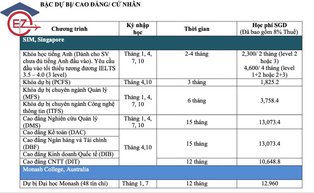 Phí phát triển SV: 253.8 SGD (Dành cho hs học Cao đẳng, Đại học. Phí dùng cho các hoạt động giúp