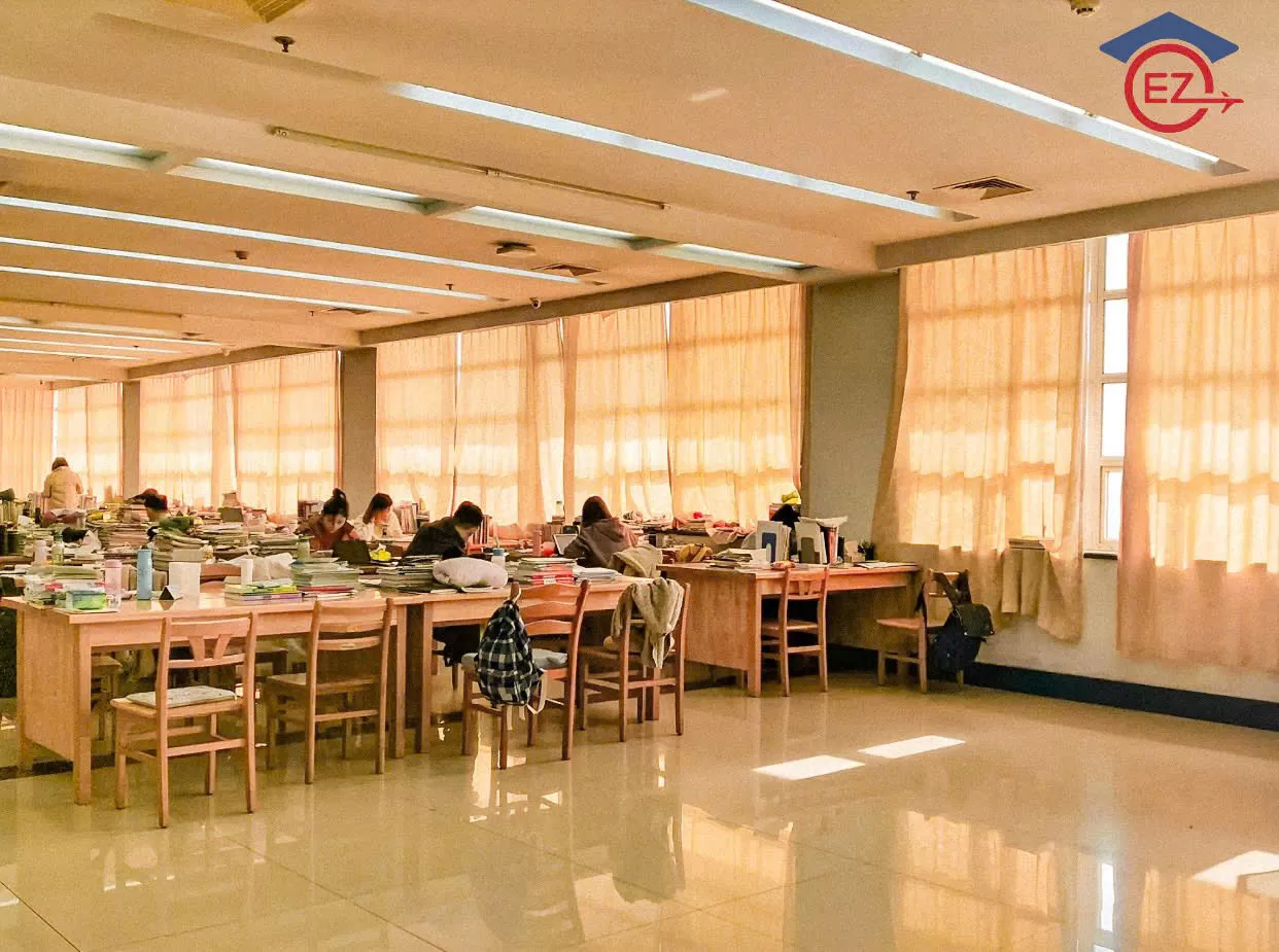 Trường có hai tòa thư viện với tổng diện tích xây dựng là 63.000 mét vuông, hơn 8.000 chỗ ngồi đọc sách và hơn 380 thiết bị máy tính đầu cuối. Trong số đó, thư viện của cơ sở chính nằm trong khu vực văn phòng hành chính của cổng phía Đông Nam của trường, là một trong những tòa nhà mang tính bước ngoặt của trường.