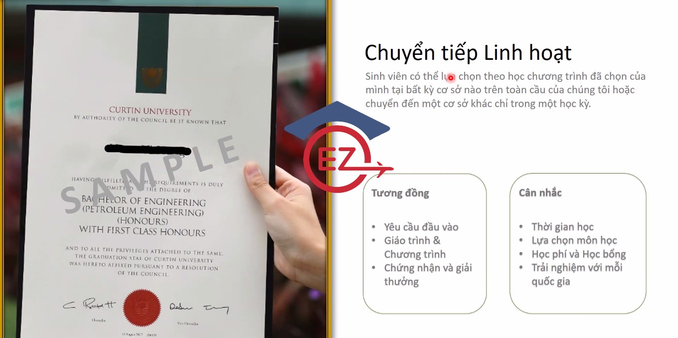 EZ Go Vietnam tự hào là đơn vị đưa sinh viên Việt Nam tới Curtin University với số lượng đông đảo hàng năm, bao gồm cả chương trình chuyến tiếp. Để được tư vấn và hướng dẫn lộ trình cũng như hỗ trợ xin học bổng vào Curtin Singapore, quý phụ huynh và các em học sinh hãy liên hệ ngay với hotline của chúng tôi qua số điện thoại: 090.125.9991 hoặc điền Thông tin dưới mục Bạn quan tâm, EZ Go Team sẽ liên hệ sớm nhất có thể ạ!